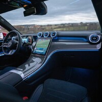 A jak je to s těmi technologiemi? Mercedes toho nabízí opravdu hodně, ale ještě důležitější informací je, že ať už jde o bezpečnostní asistenty nebo jen komfortní funkce, vždy to funguje na jedničku. Třeba obrovský head-up displej, který umí zobrazit tak 2x víc věcí než ostatní. Stejně tak středový displej, který je doslova nabitý funkcemi. Přesto stačilo pár minut a hned bylo jasné, kde co hledat. I kdyby to ale jasné nebylo, je tu záchrana v podobě opravdu funkčního (snad nejvíce ze všech automobilů) hlasového asistenta. Zvládá toho opravdu hodně, ale hlavně se nemusíte učit hromadu přesných výrazů, stačí na něj normálně mluvit nebo popsat co chcete udělat a opravdu vám rozumí. Navrch přidá pár vtipů o konkurenčních značkách nebo při žádosti o katapult spolujezdcova sedadla začne opravdu odpočítávat a otevírat střešní okno (i když na vystřelení nepřekvapivě nedojde). Ano, pro jízdu jsou tyto vtipné drobnosti nepodstatné, ale věřím, že právě takové detaily pomáhají budovat vztah majitele k jeho autu. Jediné, co bych snad mohl trochu vytknout jsou dotykové plošky na volantu. Je vidět, že nad tím v Mercedesu přemýšleli a pro pohodlnější ovládání to raději rozdělili na dvě ramena na každé straně, a tak je to trochu lepší než u konkurence. Ale stejně je nakonec potřeba většinu plošek zmáčknout. Proč to tedy neudělat snazší?