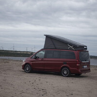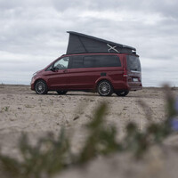 Marco Polo patří k tomu nejlepšímu, co dneska na trhu s obytnými dodávkami seženete. Zvenčí vypadá jako ‚obyčejné‘ Véčko, jen lišta s markýzou a výrazný dekl na střeše bystrému pozorovateli prozradí, že není tak úplně obyčejné. Červená barva sice budí dost pozornosti, což při kempování na divoko moc neoceníte, ale auto v ní vypadá fantasticky. A kempování na divoko nejspíš stejně nebude jeho doménou.