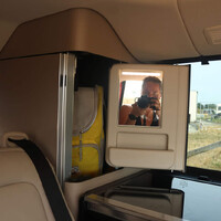 Začnu kvalitami, kvůli nimž si nejspíš Marco Polo primárně nikdo nekupuje, ale které na něm nakonec každý ocení nejvíc. To auto je superkomfortní, rychlé a skvěle jezdí – zkrátka jako Véčko. Kabina je k nerozeznání od normálního osobáku, samozřejmě kromě vyššího posezu. Přední část je vlastně starší Céčko, kterému jen přidali rychlý MBUX, na přístrojovce zůstaly klasické budíky s rychloměrem a otáčkoměrem. Sedačky se ovládají manuálně, protože musí být zároveň otočné, ale nastavují se dobře a k sezení si lze těžko představit něco pohodlnějšího. Carplay tu máme pouze drátový, konektivita však funguje bezchybně a nekonají se žádné záseky. V infotainmentu jsou taky jednoduše přístupné funkce obytné části, například topení, osvětlení nebo stav vody. Žádné zbytečné komplikace, všechno přehledné a snadné. Úplně jsem se nesžila jenom s touchpadem, ale vynahrazuje mi to displej, který má opravdu perfektní odezvu.