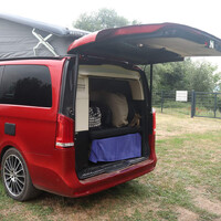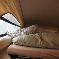 V případě potřeby se v autě vyspí čtyři lidé, dva ve střešním stanu, dva na spodním lůžku vytvořeném ze zadní řady sedadel a přídavné matrace. Jakožto dvoučlenné posádce nám stačil pouze stan a osobně hodnotím tuto konfiguraci jako naprosto ideální. Ve čtyřech by nám v autě bylo těsno. Nejde ani tak o lidi, ti by se vešli. Ale s lidmi naroste množství bagáže, se kterou se pak musí každý šibovat, aby se upravilo spodní spaní. Ne že by to nešlo, ale úplná pohodička už to nebude.