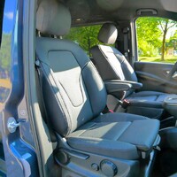 V class ale není jen o těch předních pozicích, ale samozřejmě i o dalších sedadlech vzadu. Do druhé řady je perfektní přístup přes elektricky ovládané dveře na obou stranách, bez kterých bych si s malými dětmi Véčko neuměl ani představit. Dvě pohodlná křesla pak zajišťují pohodlí snad pro kohokoli. Jako v minulosti zůstává možnost všemožného posouvání, polohování, sklápění a tak dále. Novinka je ale v oblastí bezpečnosti – všechna sedadla nově disponují upozorněním na nezapnutý bezpečnostní pás, které je funkční přes robustní konektor v podlaze a při vyndávání sedadla z auta je nutné na tento kabel myslet. To už částečně udělal Mercedes za nás, a tak je na sedadle připraven i držák konektoru a kabel tak nikde neplandá.