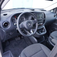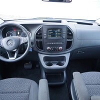 Pohled dovnitř nezapře užitkový původ. Jednoduché tvary, černé plasty, to je poznávací znamení Vita. Na rozdíl od stylově tvarovaného Véčka, v interiéru Vita najdete dostatek odkládacích ploch a všemožných přihrádek, což se počítá. Displej infotainmentu je tady pouze menší, sedmipalcový, což je na dnešní dobu trochu nezvyk. Uživatelské prostředí je maximálně jednoduché, funkce veskrze základní, ale to nemusí být na škodu. Pokud nemáte rádi komplikovaná řešení, pak budete za takovou jednoduchost asi i docela rádi. Nejdůležitější věcí u osobní dodávky je zajisté vnitřní prostor. A tady Mercedes nezklame. Dovnitř nasoukáte bez nejmenších problémů 8 lidí, přičemž každý pasažér má zcela plnohodnotné místo. Obě řady zadních sedadel jsou samozřejmě umístěné v kolejnicích, takže se s nimi dá vcelku bez problémů všelijak posouvat a upravovat vnitřní prostor dle požadavků. Kufr i při plném obsazení disponuje objemem 990 litrů, takže nemusíte mít nejmenší strach, že by se vám tam něco nevešlo. Potěší i ložná plocha, která dosahuje rovných 2,5 metru. Užitečné zatížení lehce přesahuje jednu tunu. Vito Tourer je, co se vnitřního prostoru týče, správná dodávka, jak se sluší a patří.