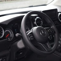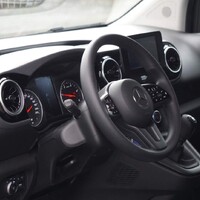 Na druhou stranu se mi líbí, že je řadicí páka pěkně vysoko, má krátké a přesné dráhy a celkově je poznat, že účelem bylo postavit kolem řidiče kokpit, jehož ovládání se co nejvíce podobá osobním modelům značky. Najdeme tu plnohodnotný systém MBUX, sice na menším displeji než v luxusnějších vozech, ale stejně dobře a spolehlivě fungující. K dispozici je i hlasové ovládání, které se ale nespouští slovy “Hej Mercedesi” ale prostě tlačítkem na volantu. Což je asi i praktičtější varianta. Potěšil mě i bezdrátový CarPlay/Android Auto, to v téhle třídě ještě zdaleka není standardem.