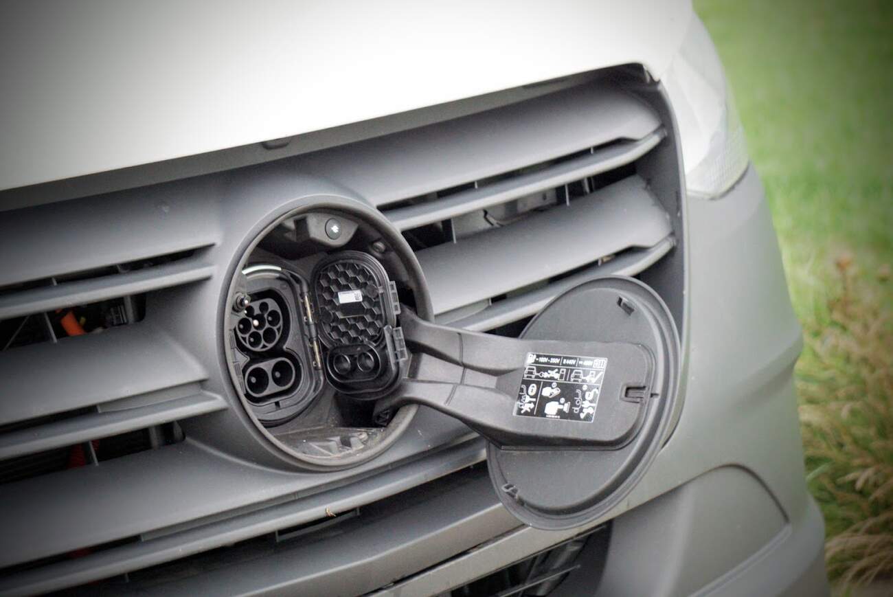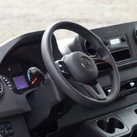 Nebýt toho poněkud křiklavého polepu (slogan “Jste #eReady?” mi přijde takový trochu křecovitý) a EL značky, nepoznali byste, že tenhle Mercedes nespaluje naftu. Vlastně jediným rozdílem na karoserii je mírně přepracované logo hvězdy na nárazníku. Oproti běžnému typu je trochu vystouplejší, protože jsou to zároveň dvířka nabíjecího konektoru. Jinak je to ale klasický Sprinter jak ho známe a máme rádi. Výbava testovaného kusu zhruba odpovídala verzi Worker+, kterou jsem měl možnost si vyzkoušet před rokem a půl, doplněné o pohodlnější sedadlo řidiče s výhřevem.
