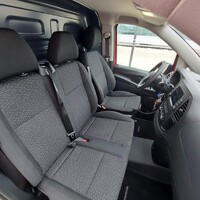 Podobné je to i v interiéru, kde sice nečekají ergonomická kožená křesla a dřevěný dekor, ale koho by to v dodávce trápilo. Nevadí mi ani manuální klima nebo jednoduchý černobílý displej mezi budíky. Co mě v prvních chvílích s plechovým Mercedesem trochu zneklidnilo, byla absence parkovacích senzorů. Jasně, kamera je zbytečný luxus, ale pípání by možná u auta bez prostředního zrcátka nebylo úplně od věci. Připlatil bych si určitě i za možnost vypnout airbag spolujezdce – v testovaném autě chyběla, a tak na přední lavici nesmíte umístit dětskou sedačku. Poslední malou bolístkou bylo základní rádio, jehož reproduktory jsou zkrátka příliš málo výkonné a při poslechu mluveného slova nedokážou přehlušit hluk obtékaného vzduchu. Abych rozuměl podcastům, musel jsem v ekvalizéru vytáhnout výšky, středy i basy na vyšší úrověň, což mělo za následek nakřáplý chrchot.