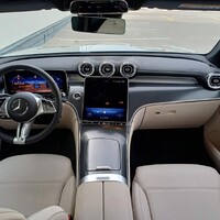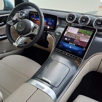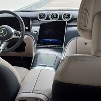 Trochu zklamaný jsem byl z provedení dekoru v přední části – zatímco díly potažené kůží a vyzdobené hliníkem vypadají skvěle, šedivý “karbonový” potisk se mi do vkusu příliš netrefil. Pohled do konfigurátoru navíc odhaluje, že alternativou je lesklá černá, strukturovaná černá a stříbrnošedá. A žádné dřevo. Já vím, je jiná doba, ale přesto mi Mercedes bez dřeva přijde tak nějak neúplný. A tak mám pocit, že právě pocit za volantem a členění interiéru směrem “do výšky” je jediné místo, kde jsem na klasické “céčko” v sedanu nebo kombíku vzpomínal s lehkou nostalgií.