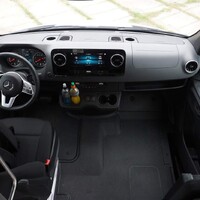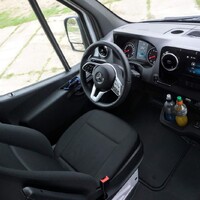 Kromě těchto specifických vychytávek je tu i pár příplatků, které si můžete pořídit i k jiným Sprinterům, ale tady dávají dokonalý smysl. Ať už to je zvětšená palivová nádrž o objemu 93 litrů (protože tankování zdržuje), silnější alternátor, zesílený podvozek pro nekvalitní cesty, zesílená přední i zadní náprava, akustický paket omezující pronikání hluku od motoru k řidiči, ale třeba i omezovač na 130 km/h (protože komu se chce řešit pokuty). Potěší i desetipalcový infotainment s aktuální verzí systému MBUX, který je skutečně dobře odladěný a v kombinaci s Android auto/Apple car play lze šikovně nakonfigurovat a dokonce si poradí i s importem seznamu mapových podkladů v .CSV přímo do navigace. A najdeme tu i nadstandardní množství USB zásuvek na všechny telefony, čtečky, PDA, palubní kamery a další kurýrní nezbytnosti.