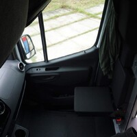 Vpředu pak nenajdete obligátní trojmístnou lavici, ale jen jedno sedadlo řidiče a jedno nouzové sklopné “kinosedátko” určené pro občasného spolujezdce. Díky tomu je vpředu spousta místa, zmizely takové ty černé díry mezi sedačkami, kam v nejnevhodnější dobu pravidelně zapadají drobné a tužky. Kabina se dá krásně “zabydlet”, na věšáku v právé části může klidně viset nepromokavá bunda, která v dešti neodkapává na čalounění, ale přímo na podlahu, s přehledem se sem vejde batoh, taška s nákupem, nebo nějaká obzvláště křehká zásilka a o nic z toho nikdo nezakopává.