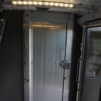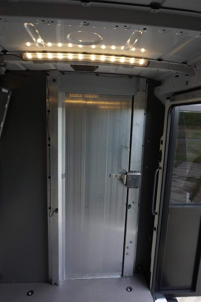 Tím to ale teprve začíná, změn je tu mnohem víc. Začneme třeba vzadu – Balíky tu lze vyrovnat do polic s dvousetkilovou nosností, regálky se snadno sklápějí, takže v případě, že nejsou potřeba, lze je připlácnout ke stěně dodávky a nepřekážejí. Potěší i trojice silných LED světel na stropě, která usnadňují hledání zásilek v policích. A jak je vidět na fotce níže, odpadná i to nepříjemné přebíhání venkem – nákladový prostor je s kabinou spojen zamykatelnými šoupacími dveřmi.