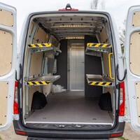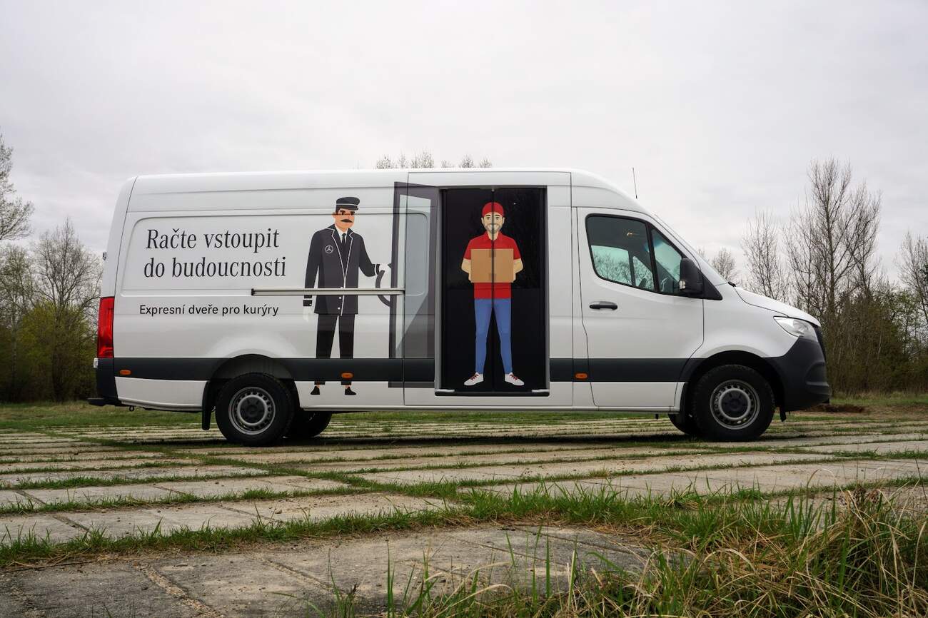 Jsem si jistý tím, že při navrhování delivery verze Sprintera spolupracovali inženýři ze Stuttgartu s pěknou řádkou zasloužilých kurýrů. Poslouchali jejich nápady a stížnosti, přemýšleli, trochu se inspirovali za oceánem a výsledkem je něco, co se nebojím nazvat snem každého balíkáře. Tohle auto vypadá ze tří stran jako klasický dlouhý Sprinter. Rozdílný je jen levý bok, kde (kromě reklamního polepu) najdeme dvoukřídlé dveře, ne nepodobné těm z městského autobusu. Jsou samozřejmě elektricky ovládané a dokonce se umí automaticky otevírat a zavírat. Oproti těžkým šoupačkám je to rozhodně krok správným směrem.