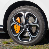 Jenže po prvotním opojení a novém vnitřním nastavení sám sebe na možné nesmyslné rychlosti úplně všude si začnu všímat i dalších drobností. Třeba dávkování výkonu – nečekejte zde nic extra promyšleného. Třeba ostatní automobilky se snaží výkony podávat nějak sofistikovaně. V MG si s tím ale moc hlavu nelámali, takže když dám při normální jízdě plný plyn, je jasně cítit, že úvodní kopanec jde od zadního elektromotoru a ten přední dodá po takové půlvteřince ještě větší chuť k životu. V režimu Sport už to cítit není, ale kdo před každým předjížděním mění režimy. Také podvozek, tak zábavně naladěný pro základní verzi auta (150 až 180 kW podle verze) se zadním náhonem jako by tady už prostě nestačil. Rychlosti jsou všude vyšší a výraznější naklánění na jistotě nedodává. Ano, auto v zatáčce vydrží dost, ale příjemné to moc není. A pak brzdy – XPower má větší kotouče (280 vs 345 mm) a z dálky to vypadá na snad nějaké aspoň čtyřpístkové třmeny, ve skutečnosti je to jen nalakovaný kryt a pod ním se schovává běžná technika. Brzdný účinek bych si zkrátka představoval trochu jistější a nepomáhá tomu ani výše zmíněný měkčí podvozek. Při brzdění se tak předek docela propadá a když pak po autu ještě chci aby i zatáčelo, může to být trochu oříšek. Nemůžu si zkrátka pomoc, ale při tomto režimu mi zkrátka třeba TM3 Performance přišla o dost jistější. Ano, je ale také dražší. Možností je u MG upravovat podvozek, dát tvrdší pružiny i tlumiče, jenže to je zas v rozporu s každodenní použitelností auta.