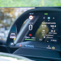 Zůstává také stejný infotainment, u kterého bych se chvíli zastavil. Proti starším systémům výrobce se zde udál obrovský skok vpřed, ale to ještě neznamená, že je všechno růžové. Ač je obrazovka na dnešní dobu poměrně malá, vůbec to není na škodu. Základní zobrazení má chytré rozložení a vlastně přehledně zobrazí vše důležité. Menu jsou poměrně logicky členěná, ale taky poměrně dlouhá, takže ač víte kde co je, stejně to vždy zabere nějak moc dotyků. Ano, řeč je především o vypínání bezpečnostních asistentů, ale i o dalších nastaveních. Nejdříve je vždy dobré vypnout upozornění na překročení rychlosti, sledování únavy a taky přísné sledování držení v pruzích. Bez toho se jízda stane spíš symfonií bezpečnostích pípání. U některých aspoň víte, čím jste se provinili tentokrát, u některých se to ale nedozvíte vůbec. Další trochu nelogickou vlastností je, že při každém nastarování je jednopedálové ovládání vypnuté. Proč? Zamrzí také nutnost připojení mobilu kabelem, pokud chci používat Android Auto nebo Apple Carplay. Takže ač dochází k posunu, stále je rozhodně co zlepšovat. Ale tohle všechno platí i pro standardní verzi automobilu.