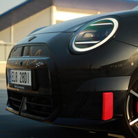 V rámci JCW paketu o něco povyrostla maska, avšak reálné nasávací otvory jsou menší vespod, elektromobil totiž víc nepotřebuje. Na stranách nárazníku přibyly prolisy, které přidávají víc na sportovním vzhledu.