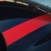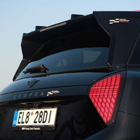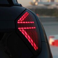 Vzadu je to asi nejzajímavější. Koncové svítilny mohou mít rovněž tři módy světelného podpisu. Jinak zde hlavně dominuje sportovně střižený široký nárazník a k němu neméně výrazné křídlo. Jako bonus výrobce přidal polep v podobě stylizované závodní šachovnice na víko kufru, která se táhne po celé ploše pod lištou osvětlení registrační značky. Ano, nelze ji jen tak vidět, protože seč je oproti lesklé karoserii matná, stále má černou barvu.