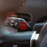 Faktem však je, že pod přední kapotou se skrývá elektromotor, jenž dává úctyhodných 190 kW (258 koní) výkonu a 350 Nm točivého momentu, přičemž vše je přenášeno pouze na přední nápravu. S tlačítkem „BOOST“ na volantu dostanete na pár sekund, třeba pro účely předjíždění, dalších 27 koníků navíc.