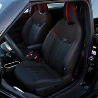 Sedačky vypadají v duchu John Cooper Works skvěle. Navíc boční vedení dostatečně drží v zatáčkách. Akorát mi docela vadí použitý materiál – veganská kůže kůže Vescin. Ta měla za následek to, že i s naplno puštěnou klimatizací jsem se v ní v horkých letních dnech po chvíli skoro vždy potil.