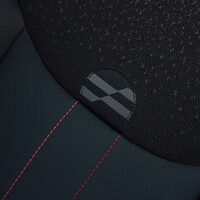Uvnitř není ale vše jenom o interaktivní kruhové obrazovce. Rozhlédněte se kolem. Volant vypadá za mě super – tlustý věnec s výraznými bicepsy, červené prošívání, zlatavé logo a textilní pásek v barevné kombinaci, která koresponduje se zbytkem vozu. Je tu vcelku slušný prostor a vše, na co sáhnete, vypadá bytelně a je hezky zpracované. Palubovka má pěkné tvarování, včetně výdechů klimatizace, jenom by mi dělala starosti její hrubá textilní textura, která bude na čištění peklo.