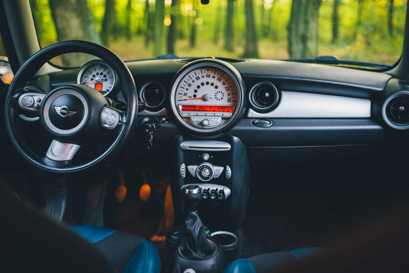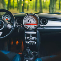 Ale nejsme tu od srovnávání, pojďme se posadit. Docela mě překvapilo, kolik místa je v Mini vepředu. I dvoumetrový člověk by asi neměl problém s tím se usadit, jen strážník Hightower by nejspíš musel vyndat přední sedačku stejně jako ve staré Hondě Civic. Posez je docela dobrý, jen si díky malému čelnímu sklu, které je skoro kolmé k podlaze připadáte jako v tanku. Hodně malém (a na tank dost prostorném) tanku. Sedačky se dají docela pěkně nastavit, takže si sednete, vložíte klíč ve tvaru většího piškotu do otvoru pro něj určený a můžete po stisku spojky tlačítka startovat. Potud dobré. Ale teď nastal čas na trochu hejtu. Proč, proboha proč nechali olbřímí tachometr uprostřed? Nejenom, že vypadá nějak tak divně, ale také na něj je z řidičovy pozice docela špatně vidět. Za to na něj dobře vidí zbytek osádky, takže přicházíte o ty momenty, kdy projíždíte okresku lehce nekorektní rychlostí, aniž by o tom spolujezdec tušil. A pak ovládání okýnek! Proč ho musím lovit někde pod řadící pákou? Nešlo by to dát na dveře? Já myslím, že určitě jo. Konec hejtu, pojďme se raději projet!