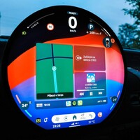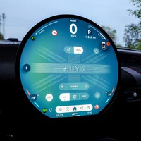 Nová jednotka, nazývaná jednoduše Mini Interaction Unit, je tedy tvořená jedním 9,4” velkým kruhovým OLED displejem. Displej je krásně jemný, má neuvěřitelné rozlišení a není problém s čitelností ani na přímém světle. Samotný displej je tenký, ale nehýbe se ani při silnějším stisku – pevně jej drží stojan, v němž najdeme projektory, které promítají různé světelné efekty na látkový vzor palubní desky v závislosti na zvoleném režimu Experience.