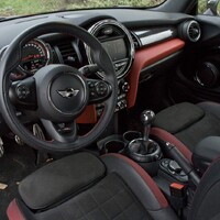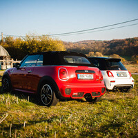 Ano, je to trochu umělé, ale co na tom záleží, když to funguje? Jedinou nevýhodou je, že si člověk nemůže pomoct, aby nejel stylem brzda plyn i na nákup do Lidlu. Řízení je přesné a strmé, s vyšší rychlostí příjemně tuhne. Jak si tak peláším krajinou se střechou dole, mám pochyby, zda se Mini ještě stále řadí mezi městské hatchbacky. Je to do detailu zpracovaná luxusní petrolheadská ikona, auto pro kluky a holky, kteří se nebojí být vidět a kteří si chtějí hrát.