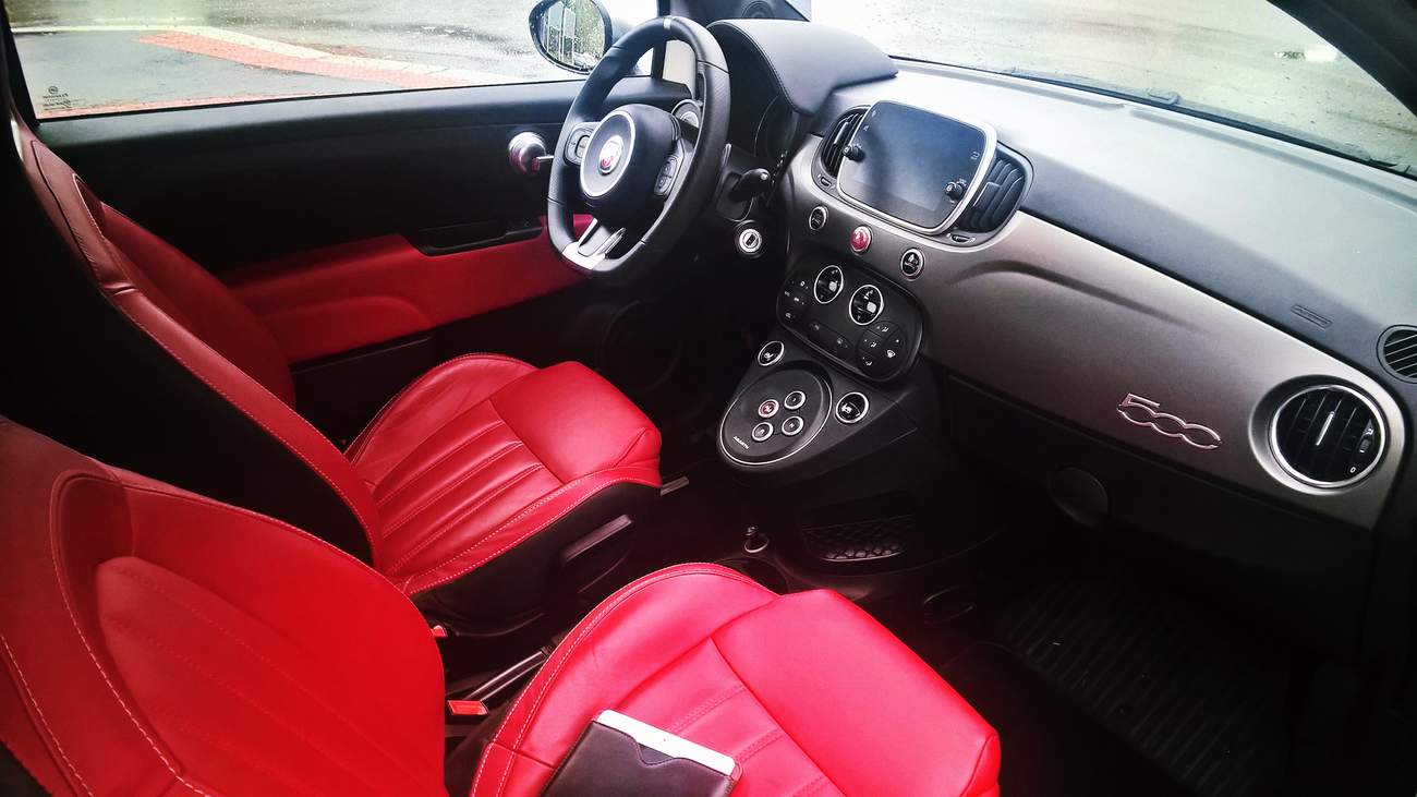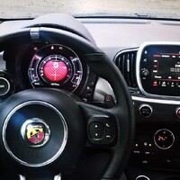 Tak dobrá, obě kapesní hračky jsou výrazné a veselé, pojďme dovnitř. V Abarthu je klasická kabina Fiatu 500 patřičně upravená. Především sportovní červené kožené sedačky a hezký sportovní volant s pádly řazení tvrdí muziku. Příjemné jsou detaily, změněné přímo pro Abarth, grafika na centrální obrazovce radiomapy i v přístrojové kapličce zobrazuje důsledně loga Abarth, nikoli Fiat 500. Sedačky jsou pohodlné, vzadu je však prostor jen pro cestující menší postavy na kratší cesty – ačkoli jak daleko by kdo chtěl Abarthem 595 jezdit, že? Výbava je také slušná, Fiatí radiomapu již známe a ani v Abarthu k ní nemám výhrad. Střešní okno příjemně prosvětluje interiér a audiosystém Beats předvádí kvalitní ozvučení, které je pochopitelně u podobně zaměřené italské hračky nezbytné.