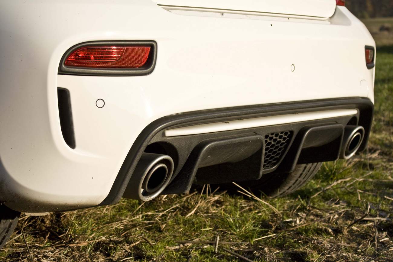 Je pravdou, že Abarth nedokáže zcela zakrýt, že jeho základem je malý Fiat, však také testovaný kus Mini má cenovku odpovídající dvěma Abarthům. A také je pravdou, že výfuk Abarthu, ač také není právě tichý a nenápadný, nepředvádí tak okázalou show. Řešením by snad mohl být některý z příplatkových sportovních výfuků.