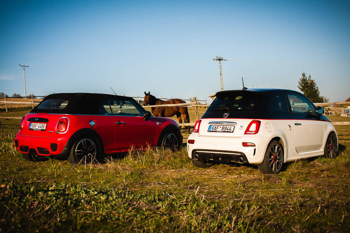 10. 11. 2017, 14:05Obě auta mají něco do sebe. I z fotek je patrná cenovka zejména v interiéru kraluje evidentně Mini. Na ulici mám ale ráději pětibábu. Působí vesele a v Abarthu i docela odhodlaně. Navíc ta cena:) Motorizace jsou evidentně skoro nesrovnatelné. Zase cabrio je taky něco, co lze brát jako plus. Stejně bych si koupil Abartha asi právě proto, že Mini kopr na mě působí spíše dojmem stylové Bmw 1er nahoře bez.