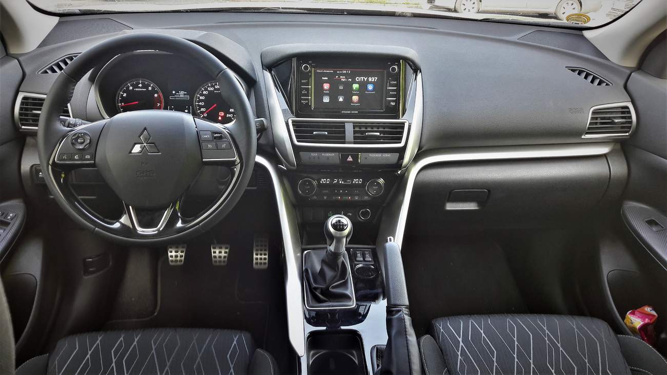 Nasednutí do interiéru znamenalo pro mne menší cestu časem. V interiéru totiž Eclipse Cross hraje na devadesátkovou notu. A to tak, že hodně. Jednoduché a přehledné analogové budíky, mezi nimiž se nachází palubní počítač, disponující pouze základními funkcemi. Trochu mě překvapilo, že tlačítka k jeho ovládání se nenachází na volantu, nýbrž pod ním, což už jsem nějaký ten pátek taky neviděl. Ona celá palubní deska nabídne nekomplikované tvary, všechno je čisté, přehledné a prosté jakýchkoli zbytečností a kudrlinek. Je to však špatně? To záleží na úhlu pohledu. Spousta lidí v dnešní době nadává, že interiéry jsou zbytečně složité, základní ovládací prvky bývají skryté v menu palubního infotainmentu a je to všechno zbytečně nepřehledné. Mitsubishi Eclipse Cross tímto rozhodně netrpí a možná i díky tomu působí vnitřek vozu opravdu bytelně. A jako bonus nabídne velmi slušnou prostornost. Trochu jsem se bál, při pohledu na svažující se střechu, že se nevejdu dozadu a budu mít problém s místem na hlavu. Opak byl pravdou, svých 184 centimetrů jsem dokázal poskládat na zadní sedačky zcela bez potíží. Ty se dají navíc posouvat vpřed a vzad, takže buď si můžete udělat místo na kolena, nebo zvětšit již tak obstojně velký kufr. Neměl jsem problém poskládat do něj věci na prodloužený víkend a kočárek k tomu. Tady sbírá Eclipse plusové body.