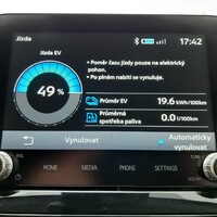 Jak úsporné to tedy je? Když je nabitá baterie, tak dokud na těch zhruba 50 kilometrech nedojde, jezdí ve městě i pod 2 litry, třeba kolem 1,5 l/100 km. Mimo město kolem pěti litrů, ale na dálnici výhody hybridu mizí, jak je obvyklé. Když tam dojde energie, může s překročením legální rychlosti překročit i 10 litrů na 100 km a „žere“ jako normální auto. Na okreskách je však asi o třetinu nebo čtvrtinu úspornější než „nehybridní“ konkurenti.