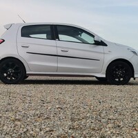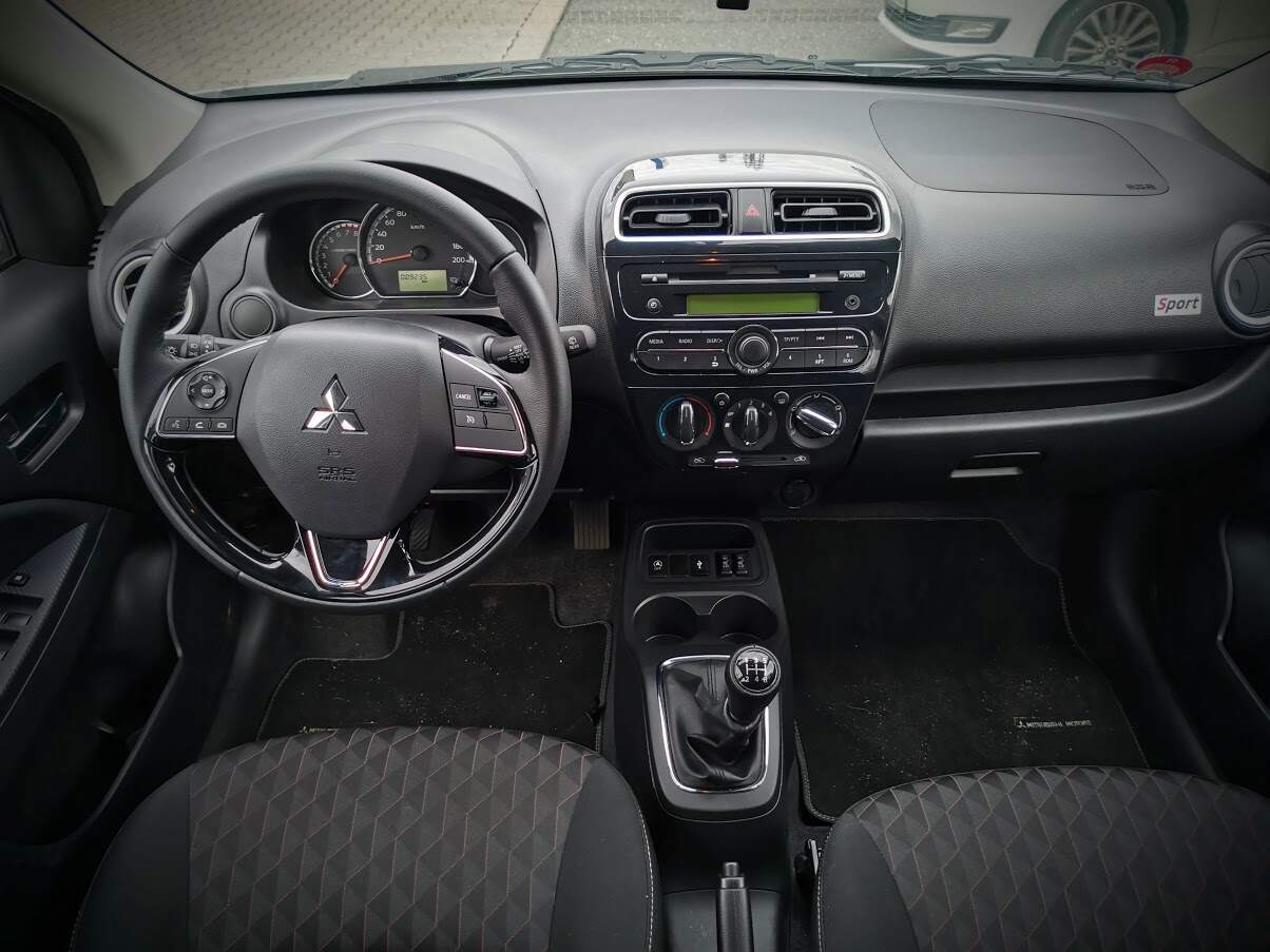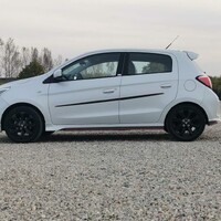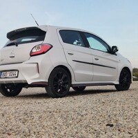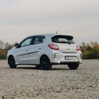 Jízdně se vůz v rámci faceliftu také vůbec nezměnil. Osvědčený atmosferický tříválec 1,2 MIVEC má klasicky zvonivý ryk vzdáleně připomínající Wartburg a ochotně se točí až k výkonové špičce, která je v 6000 otáčkách. Je tedy na řidiči, zda se bude řídit rádcem pro ekonomickou jízdu, který nutí řadit někde mezi 2500 a 3000 otáčkami, čímž se dá opravdu dostat na výrobcem proklamovaných 4,6 litrů na sto, nebo pomocí příjemně cvakající a přesné řadící páky bude držet otáčky výše, čímž bude vůz alespoň elementárně svižný a místy dokonce i jakýmsi obskurním způsobem zábavný. Moje spotřeba 6,3 na sto na konci testu myslím celkem jasně ukazuje, jaký způsob se mi zamlouval víc.