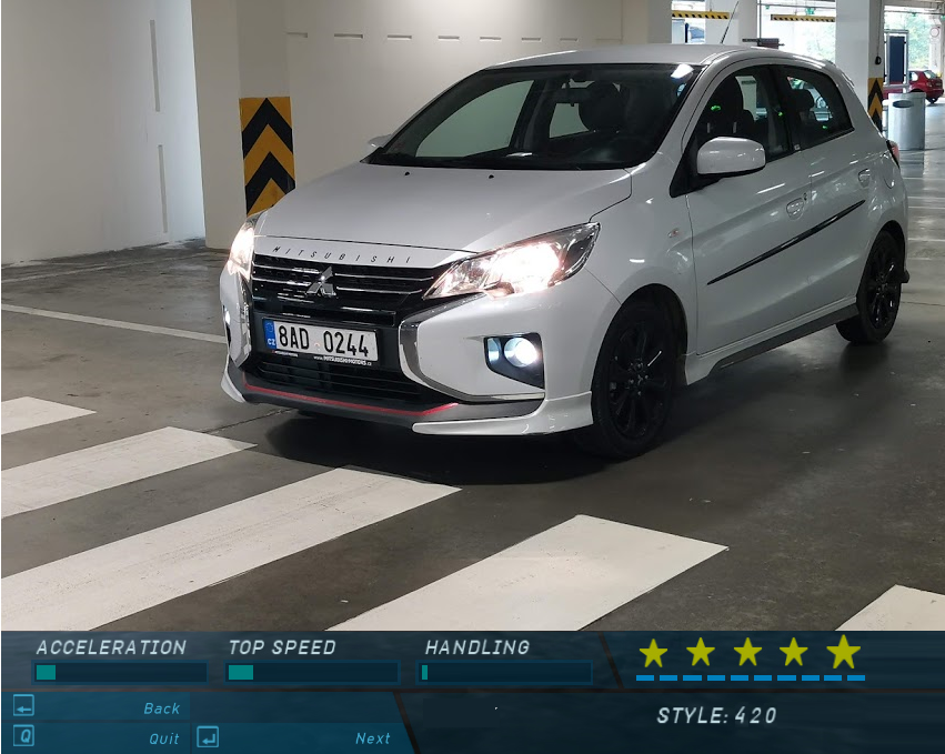 A ač to zní asi dost divně, Space Star po faceliftu byl ten druhý případ. Totiž – tohle malé Mitsubishi mě dost zajímá. Není tajemstvím, že nepatřím mezi příznivce současných Dacií a právě Space Star před faceliftem docela šikovně útočil v cenovém teritoriu Dusteru. Malé Mitsubishi jsem tak na vlastní žádost měl mít už dvakrát. Jednou jsem ho ale na poslední chvíli přepustil Františkovi, který byl toho času v Praze a neměl se jak dostat do Brna a podruhé mi, tentokrát dokonce vrcholnou verzi s CVT, vůz z prosíkem, že ani jedna z jeho amerických zadokolek nejezdí, zkonfiskoval kolega Jeník. Takže když letos přišel facelift a ve flotile zaparkovala dokonce ostře vypadající verze Sport, velmi důrazně jsem upozornil, že tentokrát je to fakt moje.