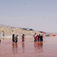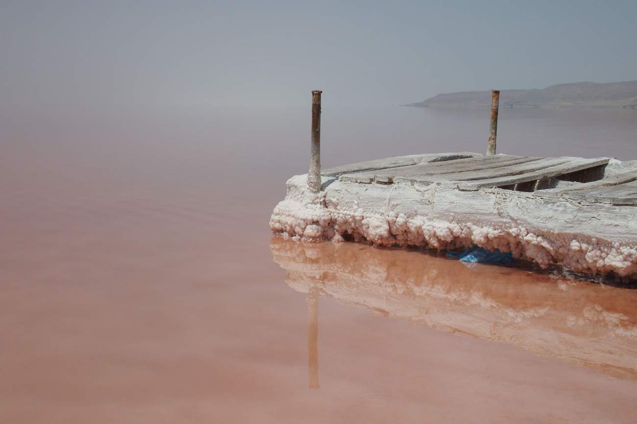 Ráno se vypravíme k jezeru Urmia. Vzdálenosti v mapě vypadají mnohem kratší než ve skutečnosti jsou. No a taky jsme měli potkat vodu o pár desítek kilometrů dřív. Slané jezero Urmia totiž závratnou rychlostí vysychá a zůstávají po něm pusté slané pláně. Tím se také zvětšuje salinita vody a mění se zastoupení bakterií a řas. A právě jejich činností se voda zbarvuje do růžova. A nejen voda, růžové jsou i krystalky soli na břehu, dokonce i pára stoupající z jezera.
