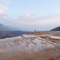 Snažíme se před vedrem prchnout do hor. Hledáme Badam-e Surt, minerální kaskády podobné tureckému Pamukkale, jen barevnější a bez turistů. Tři vodní prameny, slaný, sladký a kyselý, s příměsí síry, železa a dalších látek, vytváří tyto barevné kaskády. V zapadajícím slunci planou různými odstíny oranžové a červené. Kocháme se dlouho, až nezbývá čas vrátit se k autům pěšky. Svezeme se Zamyandem (v licenci vyráběný Nissan Junior pickup ze 70. let) na korbě společně s mladými Íránci z Teheránu, ti dle svých slov nejsou na svou zemi a její vládu zrovna pyšní. Říkáme jim o naší cestě do Mongolska a oni si postěžují, že jako Íránci by tolik víz získat nemohli.