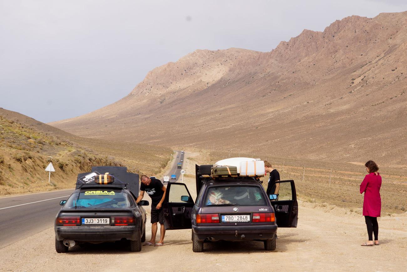 Přestože bychom rádi dál žasli nad íránským vozovým parkem (ehm, jak kdo :P), pomalu se suneme k hranicím s Turkmenistánem. Peníze za karnet nám vrátí jen v případě, že vyvezeme naše auta pryč z Íránu a budeme mít všechna razítka. Pokud se autům přihodí něco, co by je v Íránu znepojizdnilo, přijdeme kromě možnosti dojet do cíle i o značnou sumu. Není tedy divu, že nám spadne kámen ze srdce, když se výjezd z Íránu úspěšně podaří. Kdybychom jen tušili, co přijde…