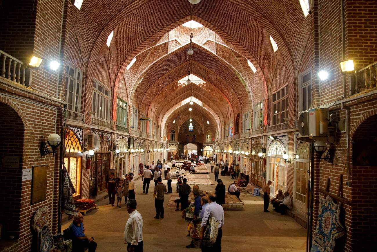 Hotel, kam nás dovede (a všechno kolem domluví), připomíná Grandhotel Budapešť. Postavený před 60 lety, skvěle udržovaný, s láskou opravovaný, s vkusnou výzdobou a klimatizací. Nečekejte tentokrát žádný podvod, hotel je až směšně levný a Farhad nám pomohl jen proto, aby si procvičil angličtinu. Po krátké poradě se shodneme, že Teherán jen objedeme, nikdo nechce takovou dopravu zažít v 6x větším měřítku. Raději zůstaneme déle v Tabrízu a poznáme ho blíže. Bazar je zaměřen na místní lidi, ne na turisty, a dá se zde klasicky sehnat úplně všechno. Michal hledá perské koberečky do auta. Koupě koberce je asi tradiční rituál a divadlo pro všechny zúčastněné. Nejdřív nezávazná konverzace a hledání vzoru a velikosti. Pak litry čaje, pije se tak, že si vložíte kostku cukru do pusy a pijete přes ni. Pak následuje dlouhé smlouvání, vyhraje vždy obchodník, protože turistu to přestane bavit a připadá si trapně. Po chvíli nás majitel obchodu ještě doběhne, že jsme mu dali málo peněz. Chvíli nechápeme, ale opravdu jsme se přepočítali. Oficiální měnou je riál, místní používají virtuální měnu tuman a celé se to pohybuje v milionových částkách. Například za lahev džusu si prodavač řekne 4, to znamená 4 tisíce tumanů, takže zaplatíte 40 000 riálů, asi půl dolaru. Jednoduché, že?