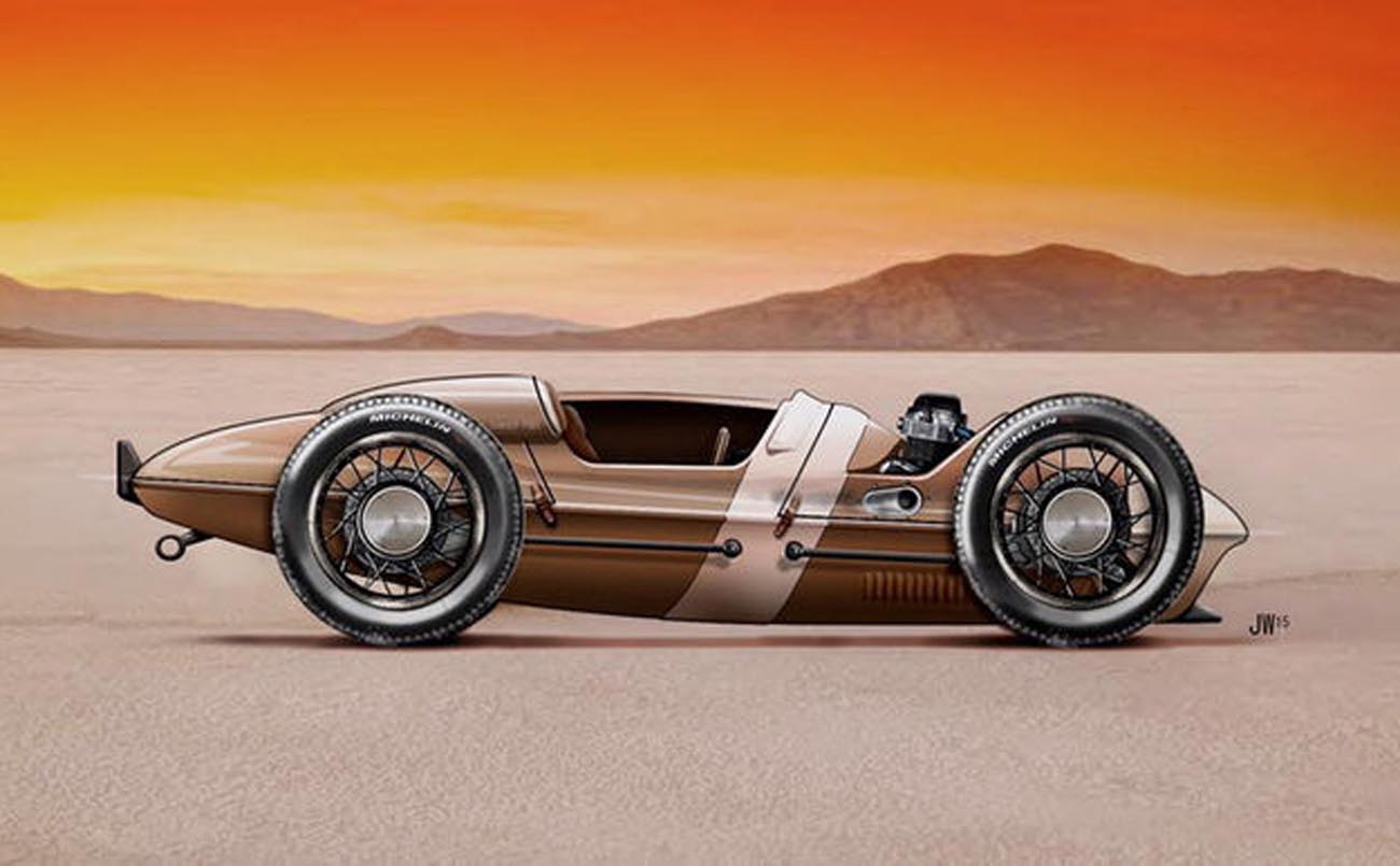 Jo, a abych nezapomněl, vedle MOGrodu se objevil ještě tento obrázek, zobrazující čtyřkolovou verzi 3 Wheeleru, která jakoby přímo vypadla z poválečných automobilových závodů. Taky stojí minimálně za podívání.