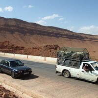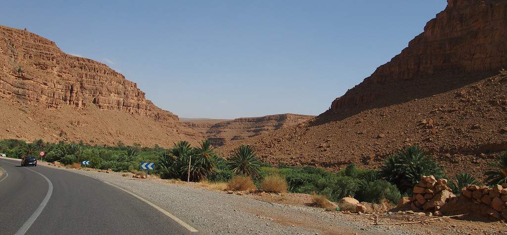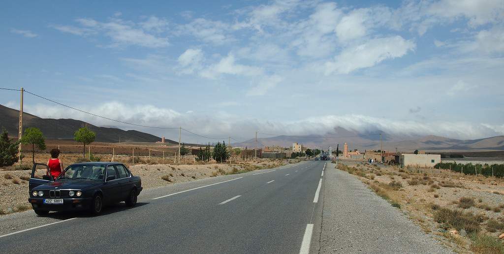 Opouštíme medinu a adrenalinovým taxíkem se vracíme zpět do hotelu, druhý den ráno vyrážíme směrem na Saharu. Čeká nás přejezd pohoří Atlas a asi 500 km trasa. Opouštíme Fés a začínáme pomalu stoupat. V jednom z měst, přes které projíždíme, u silnice potkáváme několik opic. Zcela nás ignorují. Počasí nám vlastně docela přeje, je pod mrakem a s rostoucí nadmořskou výškou vjíždíme do mlhy. Krajina je pořád dost zelená, veškerá vlhkost, která jde od oceánu, se o Vysoký Atlas zastaví a vyprší na jeho západní straně. Až po přejezdu přes vrcholy se krajina zásadně mění a začíná být suchá a kamenitá.