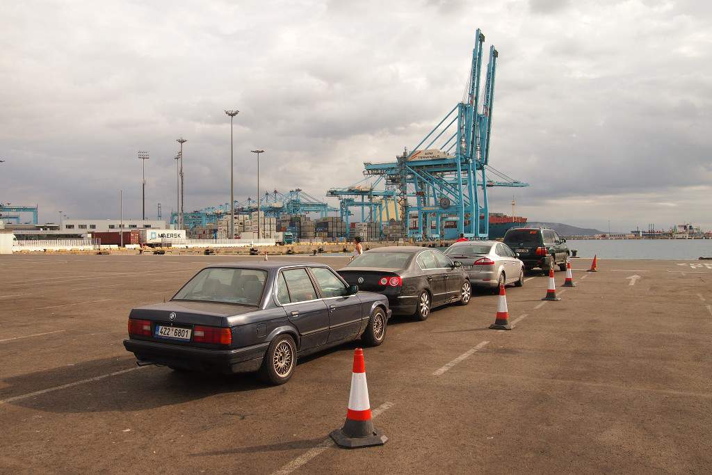 Ještě ten den večer jdeme pěšky do přístavu. Chceme zjistit, jak vlastně tyhle obrovské mezinárodní přístavy fungují, nikdy jsme s autem trajektem nejeli, netušíme kam zajet, kde koupit nějaký lístek, kam přijede trajekt.. Realita je však docela prostá, prostě se koupí lístky u některé ze společností a pak podle klasických dopravních tabulí najedeme do správné části přístavu (jsou tady prakticky 3 velké části – směr Ceuta, směr Tanger a nákladní přístav) a tam už nás navedou na správné „nástupiště“. Druhý den ráno tak konáme i v praxi. Vše je dobře organizované, po standardní pasové kontrole vjíždíme spolu s asi 50 dalšími auty do trajektu a odplouváme směr Afrika. Na lodi proběhne marocká pasová kontrola, dostaneme razítko s číslem do pasu a další razítka do dokumentu o bezcelním dovozu auta. Tenhle dokument nesmíme ztratit a zároveň se vždy musíme vrátit z Maroka i s autem. Je to jakási pojistka, aby se v Maroku nehromadily další staré auta, pro nás to znamená především to, že se v Maroku nesmí nic neopravitelného pokazit, nesmí nám Třícu ukrást a nesmíme mít nehodu. Jsou to katastrofické scénáře, ale člověka to přirozeně napadne a tohle je pak takový strašák ve vzduchu..