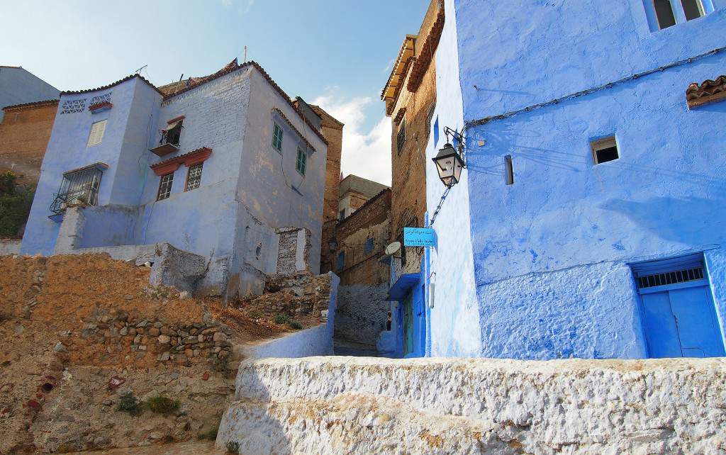 Ubytujeme se a jdeme se procházet. Všechny domy jsou modré, modré jsou někdy i dveře, rámy oken, na modro jsou natřené někdy i chodníky. Modrá totiž evokuje pocit chladu, což se v letních dnech může docela hodit. Samotné historické centrum mě však nadchlo především tím, že se zde normálně žije. Ano, jsou tu obchody se suvenýry, ale ve všech těch modrých domech žijí místní Maročané, děti si tady hrají na ulicích, potkáváme tady i dost starých lidí, občas je v uličce hromada dřeva, které právě dovezli k někomu domů a ještě ho nestihli uklidit, občas se tu procházejí ovce nebo kozy. Další Marockou „specialitou“ je hašiš :-) Je sice v Maroku ilegální, ale je tu běžně dostupný a asi je u turistů velmi populární. Při procházení uličkami nám docela často někdo pošeptá „hey man, do you want some hashish? I have the best quality. Come to my place“…