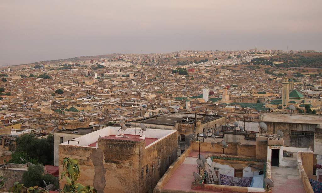 Nicméně našim cílem je druhé největší město Maroka – Fés. Fés je jedno z nejstarších Marockých měst, do roku 1912 bylo hlavním městem, je zde obrovská medina z osmého století, jedna z nejstarších Afrických mešit, stará univerzita.. To všechno jsme věděli, než jsme sem jeli. Realita však působí stejně trochu jinak. Na vjezdu do města nás odchytí Muhamad, zdraví nás českým „dobrý den“ a tak se s ním dáváme do řeči. Ptá se nás kde bydlíme, my mu ukazujeme náš zabookovaný hostel poblíž mediny, on nám to intenzivně rozmlouvá, že tam nezaparkujeme a že je to příliš nebezpečné. Nakonec se necháváme přemluvit a Muhamad nás přivádí k starému hotelu v nové části města. Tady se zaparkovat dá bez problému, cena taky bezproblémová a tak souhlasíme. Až když později téhož dne jedeme taxíkem do mediny (mimochodem, Dacia Logan s 630 tisíci km na budíku), tak mi dochází že jsme asi udělali dobře.