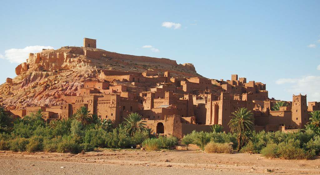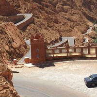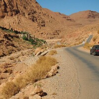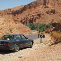 Na vrcholku za zatáčkami je prodavač pomerančových džusů, zastavujeme u něj a chceme si koupit. Není problém, ale pojďte nejdřív ke mě domů na čaj.. Tak proč ne. A tak sedíme na terase, popíjíme čaj a mladý pán nám vypráví o Nomádech, kteří ve zdejších kopcích žijí. Čaj má opravdu výborný, silný, nahořklý a doslazený cukrem. Pije se jako dobrá káva, po malých doušcích a pomalu. Dopíjíme jak čaj, tak džus a projíždíme se ještě kus dál ve směru soutěsky, pak se zase otáčíme a míříme na Ouarzazate. V samotném Ouarzazate není nic, co bychom do teď v Maroku ještě neviděli, na okraji města jsou ale Atlas Studios, což jsou filmová studia, kde se natáčelo mnoho známých filmů – třeba Mumie, Gladiator anebo Asterix a Obelix – mise Kleopatra. A tak přestože nejsme nijak extrémní fanoušci kinematografie, se na to jdeme podívat. A po pravdě, hrůza. Nikdy bych neřekl, jak lacině můžou filmové kulisy z blízky vypadat. Nedaleko za Ouarzazate je odbočka na vedlejší silnici, která vede k Ait Benhaddou a tam míříme teď. Kousek před Ait Benhaddou nás zastavuje jeden z místních. V podstatě zjišťuje, jestli nemáme něco na výměnu, konkrétně by ho nejvíc zajímal alkohol. Alkohol je totiž v Maroku relativně špatně dostupný a místní jsou asi zvyklí, že Evropané u sebe vždy něco mají. My bohužel nic nemáme a tak se rychle loučíme, ještě předtím mi však nabídne 5 velbloudu za Třícu. Nic moc, říkám si.. :) Ait Benhaddou je opevněná vesnice na bývalé karavanní stezce mezi Saharou a Marakéšem. Je to fascinující kus Berberské architektury, není zde ani moc co vyprávět, stačí se dívat. Večer spíme v ubytování u neuvěřitelně milého pána, který mi ráno při zalévání kytek rovnou i opláchnul Třícu od všeho toho saharského písku a prachu.