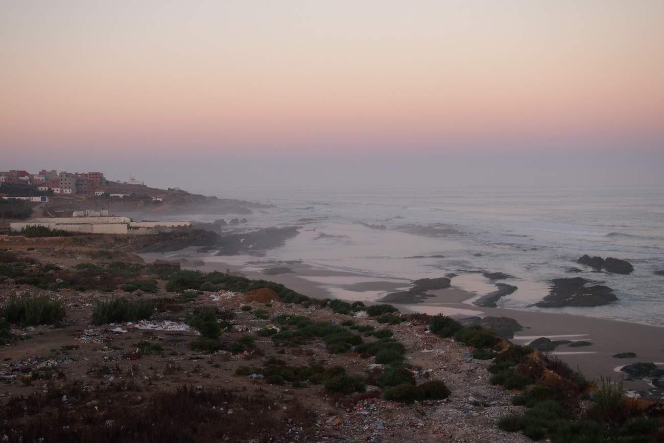 V podvečer z Essauiry odjíždíme, záměrně jedeme podél pobřeží, protože jsou zde krásné výhledy. Za to cesta je fakt mizerná, asfalt je občas tak rozpadlý, že musím zpomalit na rychlost chůze. Nedá se nic dělat.. Po asi 50 km přijíždíme do města Souira Kedima, máme zde booknuté ubytování. Když k hotelu dojedeme, zjišťujeme, že je prakticky opuštěný. Po chvíli bouchání na vchodová vrata přijde pan správce, který však mluví pouze arabsky. Nerozumíme mu ani slovo a pán není ani mistr gestikulace. Opravdu netušíme, co se nám snaží říct, nakonec voláme na telefon, který byl uveden na internetu. Pan majitel na telefonu umí naopak slušně anglicky a tak mu vysvětlujeme situaci. Říká nám, že jeho hotel je v rekonstrukci a nám se ho povedlo zabookovat asi skrz nějakou chybu a hrozně moc se nám omlouvá. Nakonec ho ukecáme, aby panu správci vysvětlil, že potřebujeme jen někde přespat a tak se dostáváme dovnitř. Máme pro sebe pokoj, ve kterém jsou dvě nové postele, obě ještě zabalené v igelitu, ale za to nemáme elektřinu ani vodu. Máme však klíče ještě od jednoho pokoje, kde nejsou postele ale zase je tam voda i elektřina.. :) Další den nás čeká už jen přesun po Marocké dálnici, míříme zpět do Evropy. Další noc trávíme v Asilah, městečku nedaleko přístavu Tanger Med. Parkujeme zase na smetišti..