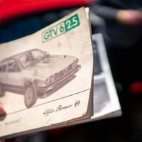 Vypili jsme kávu, nabrali pár zákulisních drbů a s poděkováním se vzdálili. Kousek dál už čekaly staré Alfy hlídané karabinickým speciálem. Mezi nimi vidím povědomé obličeje. No zase jsme se zakecali nad Alfou GTV6, jež byla celá jinak, než konkurence, a jejíž majitel se nebojí přiznat, že to auto vlastně ani není moc dobré. Prolejzali jsme to snad půl hodiny a došlo i na originální návod. Jednou si to auto musím prohlídnout zespod.