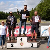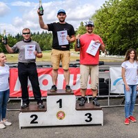 Chvilku před startem měřených jízd už nebylo pochyb, žádný dešťový mrak v dohledu a stopa vyježděná úplně do sucha. Při pohledu na Uniroyaly v podbězích jsem byl poněkud znechucen, protože na dobrý výsledek jsem na nich mohl na suchu při svých řidičských (ne)schopnostech zapomenout. Přitom ještě ráno jsem si docela věřil a těšil se na mokrý závod. Flašky bohemky či některé z věcných automobilových cen od hlavních sponzorů – DATO parts a servisu BM Motors, stejně jako dárky od Motulu, nakonec opět skončily u starých známých jmen.