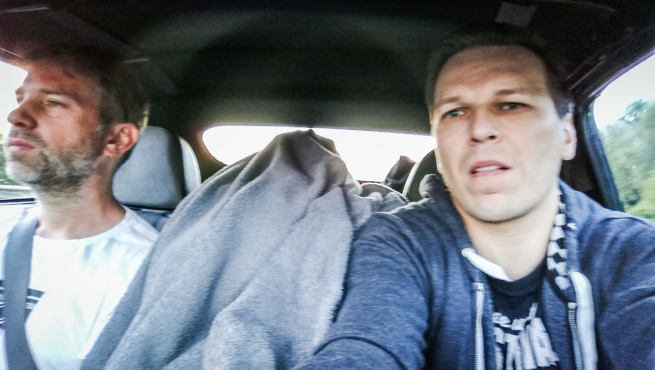 No a tím příběh v podstatě končí. Když jsem usnul, což jsem potřeboval jako sůl, tak se začali kluci honit po dálnici a já, přestože mě to probudilo a přestože jsem před předáním klíčků zdůrazňoval, že pojedeme v klidu, protože ani o jednom z aut nic nevíme, jsem neměl to srdce kazit jejich nadšený výraz v obličeji. Tedy, neměl jsem srdce to udělat okamžitě. Davidovi v autě a do vysílačky jsem uklidňující věty nudného starce začal hlásit až po deseti minutách. Aspoň jsme zjistili, že obě auta zvládnou 200km/h v krátkém čase a bez problémů.