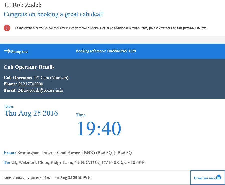 Let do Birminghamu byl bezproblémový a načas. Měl jsem skvělou náladu i přesto, že po zapnutí telefonu nebyla po několikeré emailové urgenci majitele Clia ani řádka o tom, jestli můžu auto vyzvednout už ve čtvrtek večer, nebo v pátek ráno. S pitomým úsměvem jsem vykouknul do příletové haly a sháněl se po ceduli „Mr. Zadek“, kterou měl držet v ruce taxikář, kterého jsem si objednal. Představoval jsem si, jak polovina lidí z letu z Prahy bude na ceduli ukazovat a chudák taxikář nebude chápat proč. Ale bohužel nikdo ceduli Mr. Zadek nad hlavou nedržel. Po patnácti minutách čekání jsem opustil halu, přelezl na parkoviště a tam jsem ho uviděl. Na parkovišti stála stříbrná Toyota s nalepeným “zadkem” na bočním okénku. Měl jsem co dělat, abych udržel seriózní výraz, když jsem řidiči do okénka zahulákal: „Hi, I’m Mr. Zadek!“ Jazykové bariery jsou někdy jednoduše skvělé.