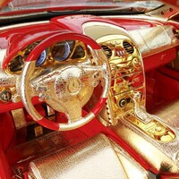 To suveréně nejhorší ale čeká na případného kupujícího v interiéru. Dalších šest kilo zlata vzalo za své při míchání speciální zlaté barvy, kterou je zde pokryto skoro všechno. Jako by toho nebylo málo, většinu zlatých povrchů “zdobí” ještě dekor hadí kůže a plochy, na které už tahle kolotočářská zlatožluť nevyzbyla jsou pro změnu sytě rudé. Z pohledu do vnitřku vozu doslova přechází zrak, toto rčení zde ale rozhodně není míněno v pozitivním smyslu slova.