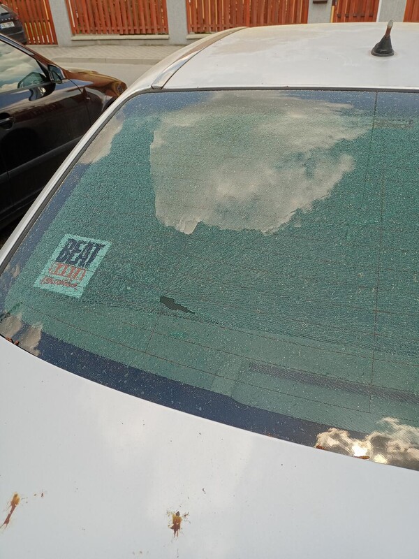 No a teď v úterý přijdu na firemní parkoviště, auto stojí cumakem k silnici s naprosto minimálním provozem (využívá pár místních) a zadní sklo na maderu... Nikde jsem nenašel kamínek, nic... Ani na kamerach nic nebylo... A milé sklo nejde sehnat :/