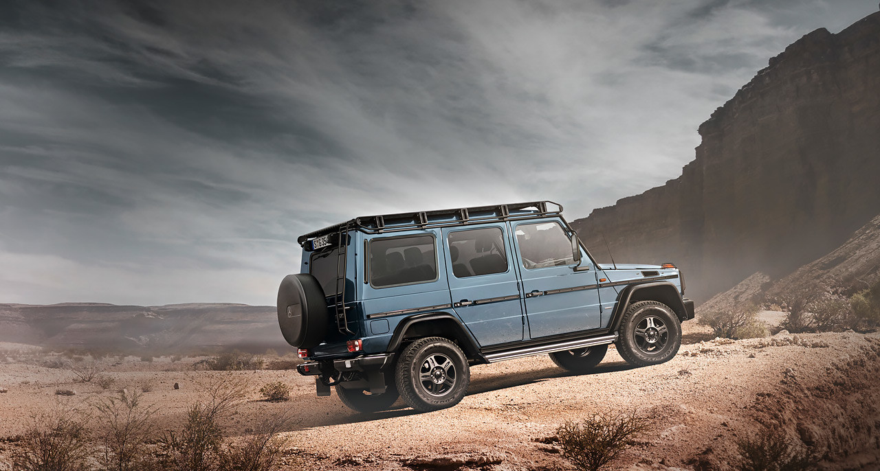 Mercedes třídy G začal svou kariéru coby ryze praktický vůz. S jeho vývojem se začalo v sedmdesátých letech na základě objednávky Íránské armády a když tento kontrakt nakonec z politických důvodů uzavřen nebyl, rozhodl se Mercedes prakticky hotový automobil dokončit a nabídnout civilním zákazníkům. Na trh vstoupil v roce 1979 a bylo to velice rozumné a chytré auto. Terénní speciál vyvinutý společně s firmou Steyr Daimler Puch – specialistou na pohon všech kol a vojenskou techniku obecně – měl zákazníkům nabídnout velmi dobré jízdní vlastnosti v terénu a slušný užitný prostor. Zkrátka ideální pracovní nástroj. Zároveň byl Mercedes G oproti konkurenčnímu Land Roveru Defender o trochu civilnější a lépe použitelný jako automobil. Potud tedy všechno dobré a tento automobil je coby G Professional v nabídce stále.