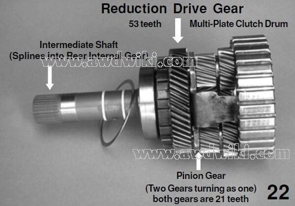 A pak je tady další varianta a to otevřenej diff, kterej je vybavenej takovou spojkou, která je většinou umístěná koaxiálně na jednom výstupu a propojuje právě onen výstup s klecí diffu. A pak se právě jedná o diferenciál s viskózní spojkou. V tomto případě ale spojka neslouží pro přenos komplet momentu na připojenou nápravu, ale moment přenáší jenom v případě, kdy se rozdíl otáček kol na nápravě nebo náprav (v případě mezinápravovýho diffu) liší. Takže dokud jsou otáčky stejný nebo se liší jenom zanedbatelně (tedy např. auto jede běžnou jízdou po asfaltu do zatáčky), tak moment, který tato spojka vytváří je téměř zanedbatelnej a moment se distribuuje tak, jak je to daný mechanickejma vlastnostma samotnýho diffu. Takže třeba 50:50. Nebo u zmíněnýho VTD u Subaru se přenáší na zadek 55 a na předek 45 % (od cca 1998, dřív to bylo u SVX jinak). A jakmile někde začne něco klouzat, tak je rozdíl otáček větší a odpor vzniklej ve viskospojce toto rozdělení změní.